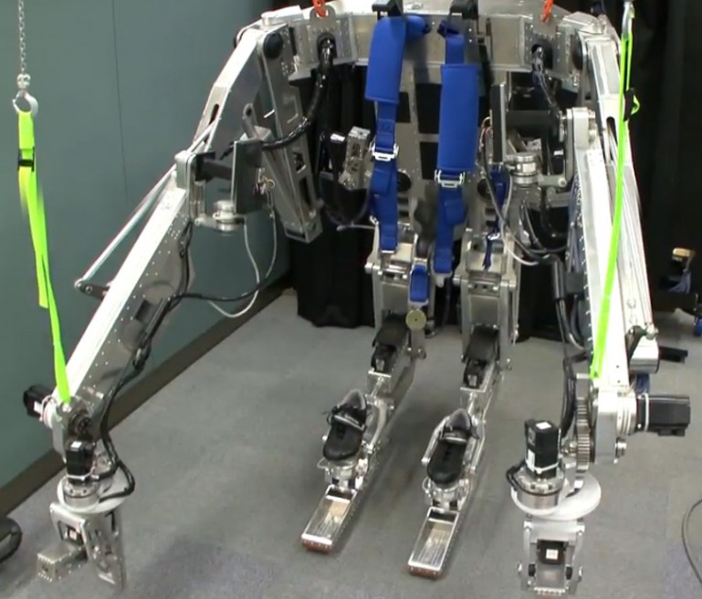 Développé par la filiale ActiveLink de Panasonic, le « Power Loader » aussi dénommé robot d’amplification permet à son utilisateur de se déplacer plus rapidement, et de soulever des charges plus lourdes, jusqu’à 110 kg, sans effort particulier.